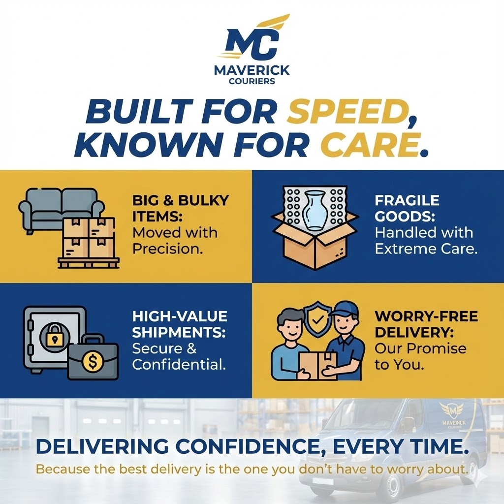 At Maverick Couriers, we help businesses and individuals move big, bulky, fragile, and high-value items with confidence. We don’t treat your shipment like “just another stop.” We treat it like a promise you made to your customer.