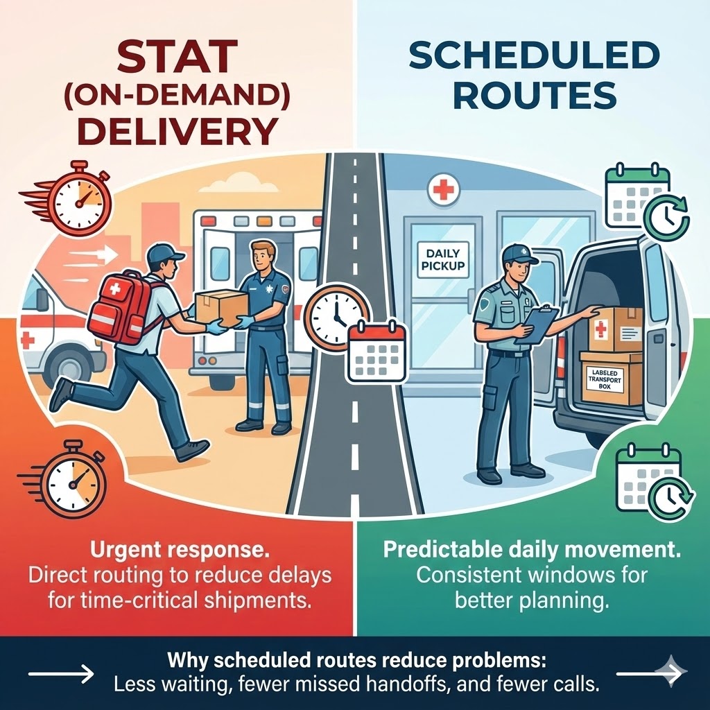 When the shipment has a patient behind it, “soon” isn’t good enough. You need STAT medical courier delivery that moves fast, stays organized, and gives you proof it arrived.
